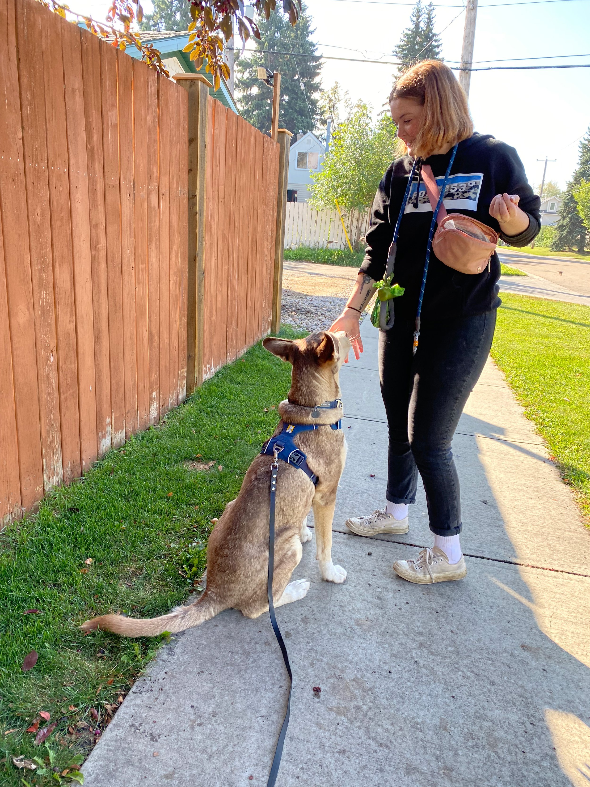 This is where I come in! A couple of years ago I injured my knee and realized that I didn’t trust anyone I knew to walk my reactive dog. I am offering reactive dog walking in the Edmonton area to support reactive dog parents like myself. My walks are force-free and dog-led, meaning we go where their sniffs take us.